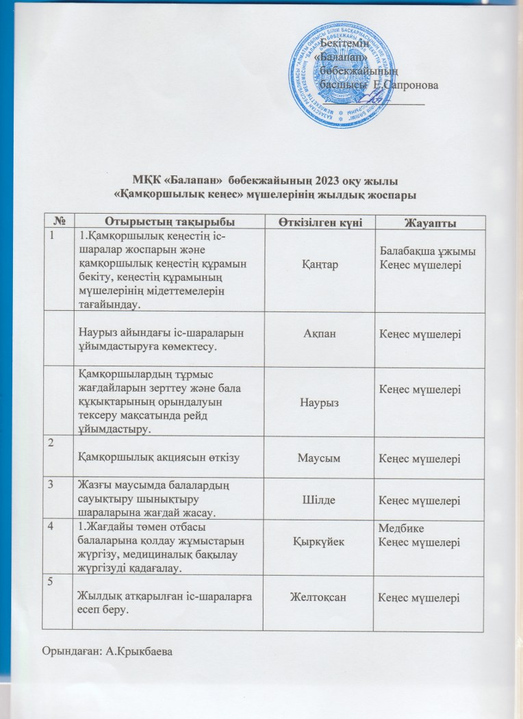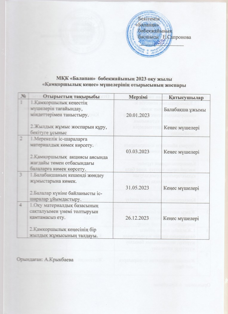 «Қамқоршылық кеңес» мүшелерінің отырысының жоспары